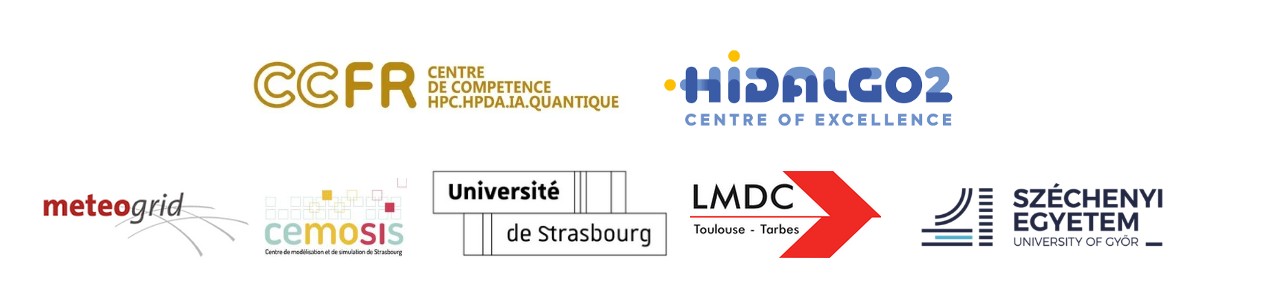 We also warmly thank the host organizations of our speakers for their support: MeteoGrid S.L. (https://www.meteogrid.com), specialized in weather forecasting and wildfire risk management; Cemosis – Centre for Modeling & Simulation, University of Strasbourg (https://www.cemosis.fr), a hub for HPC, modeling, and data-driven solutions; Laboratoire Matériaux et Durabilité des Constructions (LMDC), Toulouse (https://www.lab-lmdc.fr), focusing on sustainable civil engineering and structural durability; and MathSO – Mathematical Simulation and Optimization Research Group, Széchenyi István University (https://uni.sze.hu/), experts in industrial and urban-scale mathematical modeling.
